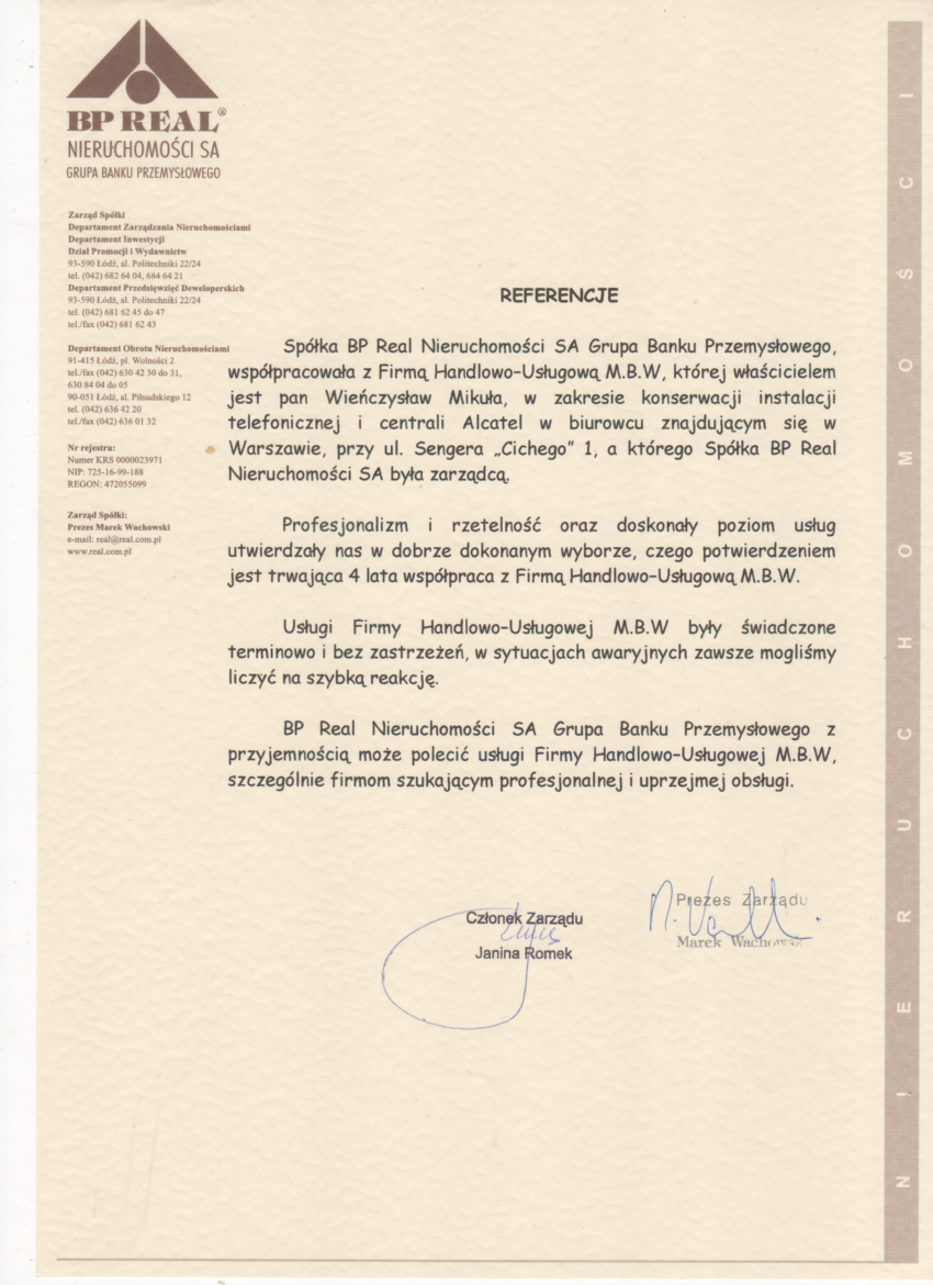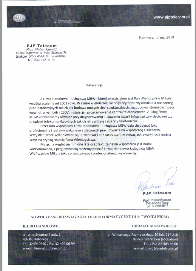 Poniżej znajdziecie Państwo niektóre z referencji, jakie otrzymaliśmy od naszych Klientów. Jeśli chcecie Państwo dowiedzieć się o nas więcej- zapraszamy do kontaktu.